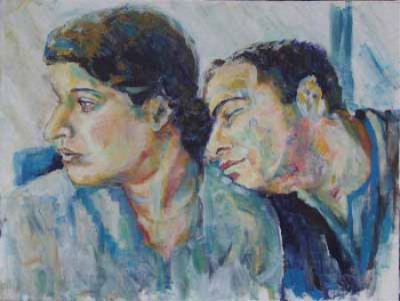 | 2 in de bus Berlijn, acryl op canvas 60/80 cm |