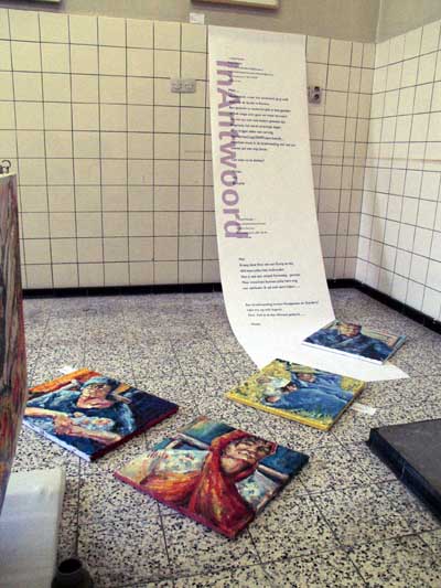 Van Gogh werd geboren in Zundert. In deze ultieme Van Goghlocatie, in de kapel van het oude Anna Klooster werd de voortgang van het project getoond. Deze keer veel aandacht voor citaten uit de briefwisseling tussen de twee kunstenaars ( lay out Ivo Winnubst) |