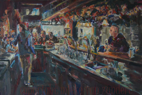 | dame aan bar, 50 bij 60, olieverf op doek | ||