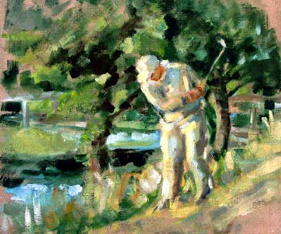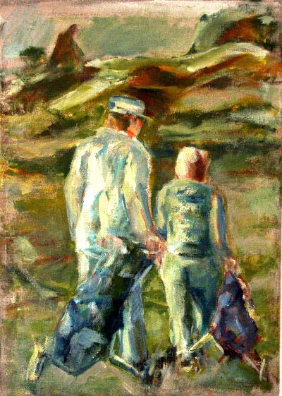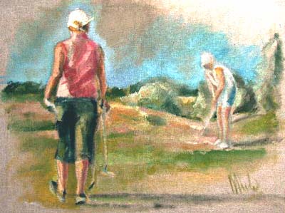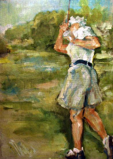 Golf acryl op naturellinnen, 50/60cm Golf acrylic on natural linen 50/60cm |