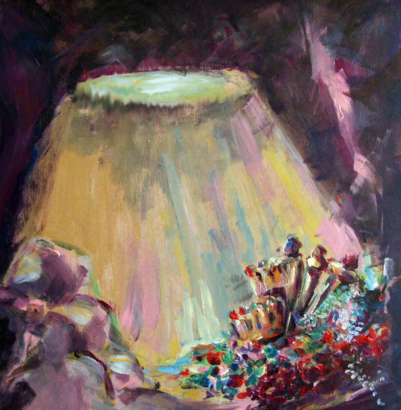 Ik schilderde de decorontwerpen die achter de spelers werden geprojecteerd.