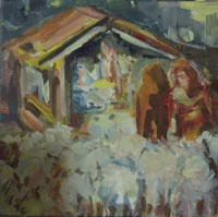 Kerststal, schilderij staand weg te zetten 10/10 cm €17,50 |