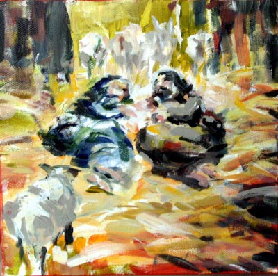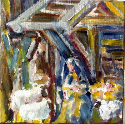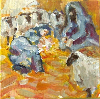 Kerststal, onderdeel schapen 20/20 schilderij staand weg te zetten €35 |
